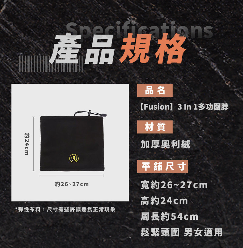 半小時前【Fusion冬季系列】3in1多功圍脖,圍脖x面罩x毛帽 一件搞定! - 【單入優惠】一入組 NT$ 890