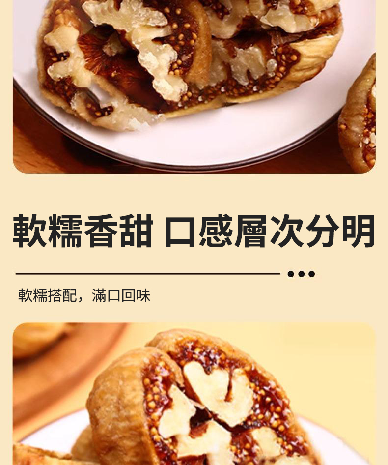 半小時前軟糯香甜的無花果與醇厚香脆的核桃完美結合,口感超棒,營養豐富,富含多種維生素和礦物質及優質蛋白質等 - 1入組 NT$998(250g)
