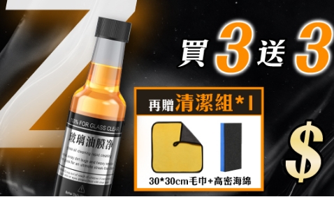 11分鐘前視線不清晰/行車不安全/一罐輕鬆去油膜 油膜玻璃淨 /水珠自然滑下不殘留/倒入玻璃水箱/立刻見效 - 【個人組】買3送3 / 贈清潔品*1NT$799